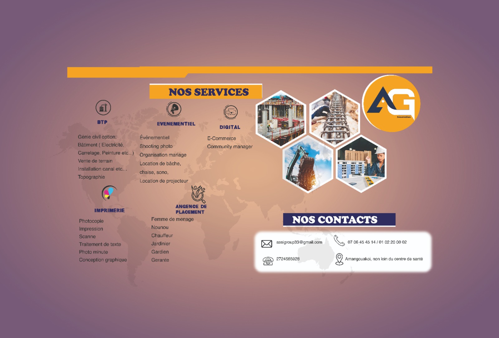 ASSI GROUP est un leader dans les secteurs du BTP et de l'événementiel, offrant des services complets, y compris le marketing digital. Nous sommes déterminés à construire des partenariats solides pour transformer vos projets en succès retentissants.
